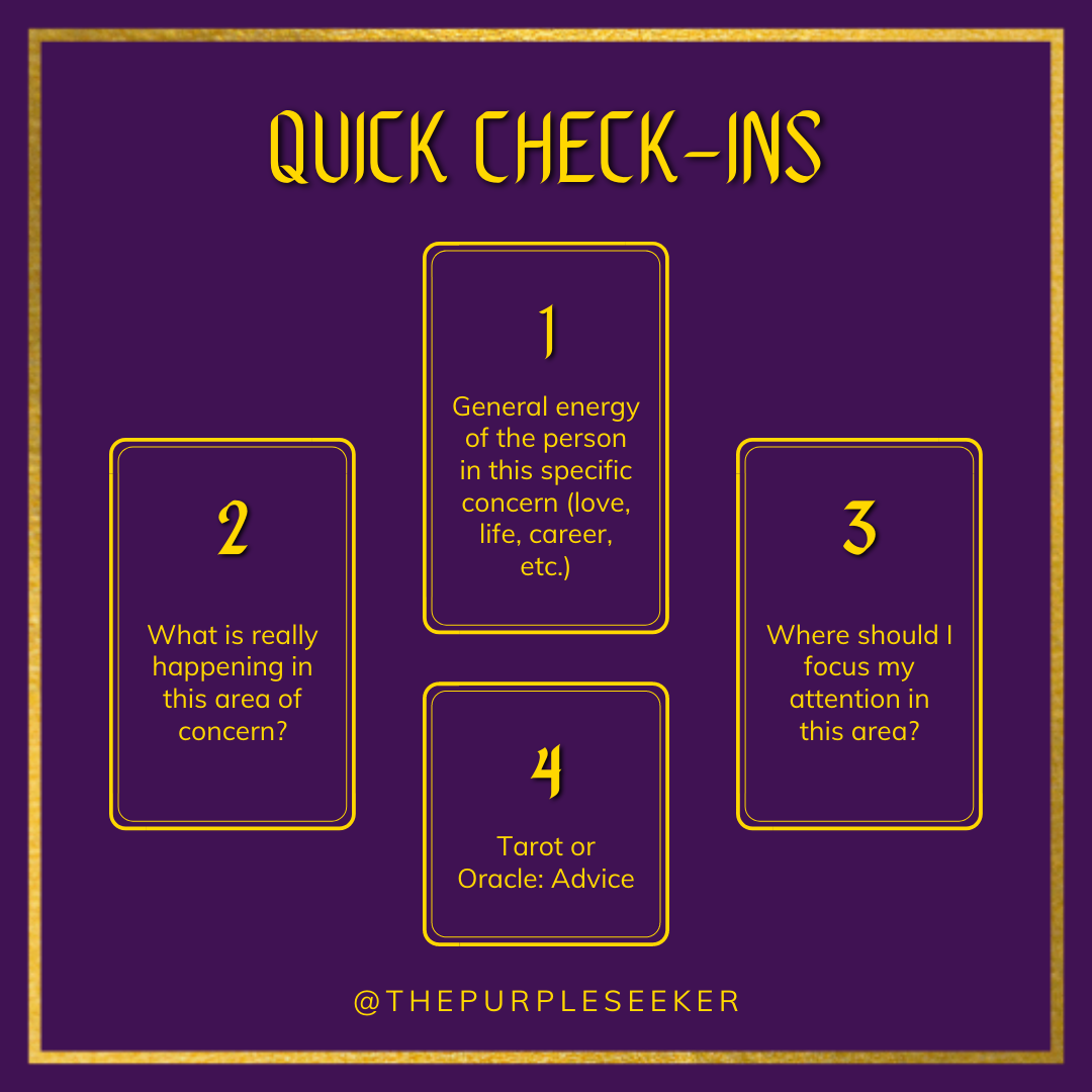 Tarot and Oracle Spread: Quick Check-Ins Spread by The Purple Seeker